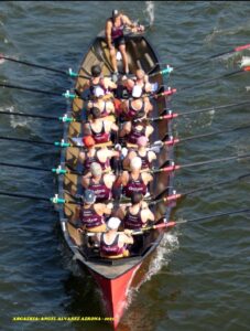 Trainera de Bilbao en regata.(Fuente Bilbao Arraunlariak).